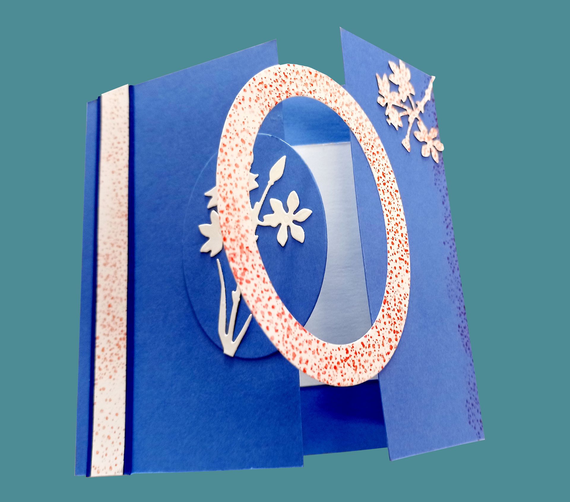 En septembre, pour la reprise septembre, réalisation d'une carte avec un pli asymétrique et une fermeture imbriquée